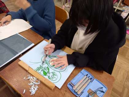 木版画(5年図画工作) (2月1日) 公開日 2023/02/01 更新日 2023/02/01 お知らせ 5年生は図画工作の時間に「木版画」の制作を行っています。 自分の顔を鏡に映して版木に下がきを施し、彫刻刀で丁寧に彫り進めていきます。 いいね(0)