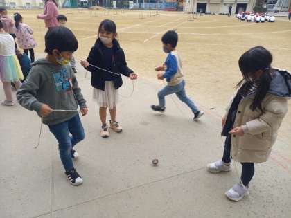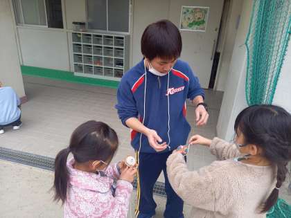 こままわし(1年生活科) (2月7日) 公開日 2023/02/07 更新日 2023/02/07 お知らせ 生活が「むかしあそび」の学習をしている1年生。 今日は「こままわし」にチャレンジです! 幼稚園や保育所で経験している子もいましたが、ひもをこまに巻きつけるところからまわすところまで、先生に教えてもらいながらチャレンジしました! いいね(0)