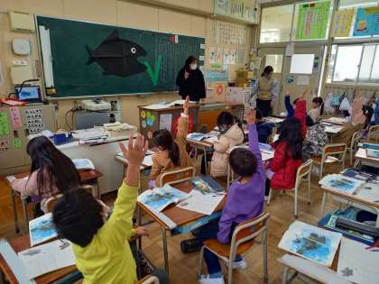 スイミー(1年国語) (2月14日) 公開日 2023/02/14 更新日 2023/02/14 お知らせ 1年生は国語の時間に「スイミー」のお話を学習します。 「スイミー」は小学校の国語の教科書に40年以上掲載されており、日本中で知らない人はいないといっても過言ではない、レオ=レオニさんの名作です。学習を通して、教科書の内容を読み取ったり、登場する魚たちの気持ちを考えたりするだけでなく、仲間と協力し、前に進む勇気と世界を知ることの素晴らしさも学んでいきます。 いいね(0)