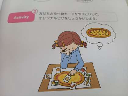 What do you want ?(4年外国語活動) (2月16日) 公開日 2023/02/16 更新日 2023/02/16 お知らせ 4年生の外国語活動は「What do you want?」の学習をしています。 テキストに載っているピザの具材を使って自分だけのオリジナルピザをつくり、どんなピザをつくったかクラスのみんなに英語で紹介していきます。 いいね(0)
