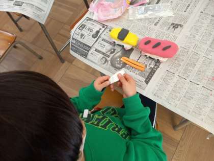 かみねんどをつかって(1年図画工作) (3月6日) 公開日 2023/03/06 更新日 2023/03/06 お知らせ 1年生は図画工作の時間に「かみねんど」を使った作品作りに取り組んでいます。 「かみねんど」は加工がしやすく、着色もしやすいので、子どもたちは工夫を凝らしてさまざまな作品をつくっています。 いいね(0)