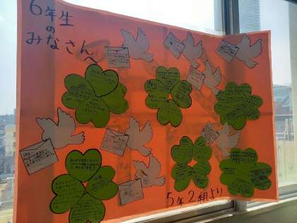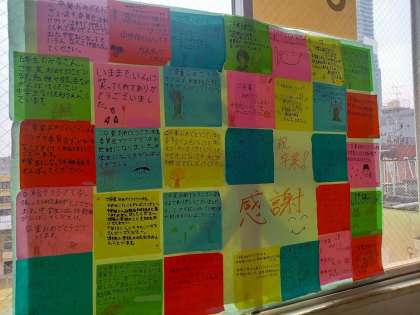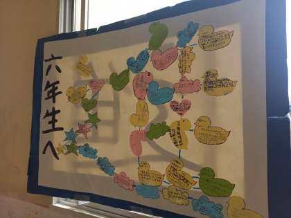 6年生に感謝とエール!(3月9日) 公開日 2023/03/09 更新日 2023/03/09 お知らせ 先日行われた“卒業を祝う会”で、5年生が各クラスに贈った“漢字1文字”の裏面には、心あたたまる5年生からのメッセージがずらり! 6年生の教室の前に掲示されています。 いいね(0)