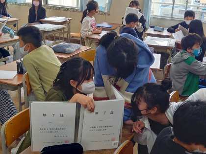 自分の席に戻り、通知表の中身をじっくりと見ます!
