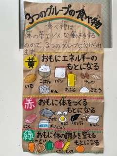 「豚肉のガーリック焼き」は焼き上がりのパサつきをおさえるため、たまねぎといっしょにオーブンで焼いています。ガーリックパウダーのほかに、料理用白ワイン、塩、粗びきこしょう、こいくちしょうゆ、オリーブ油を味付けに使っています。こどもたちに大好評でした。