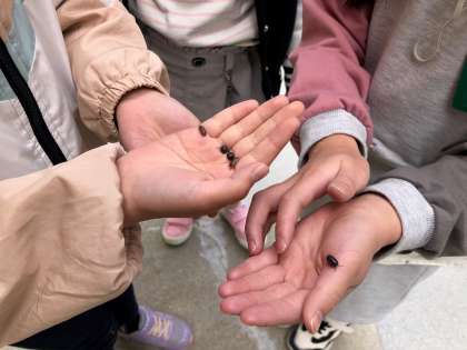 「ダンゴムシを見つけたよ!」と3年生の児童たちが、見つけたダンゴムシを見せてくれました。