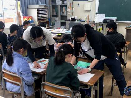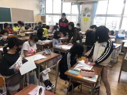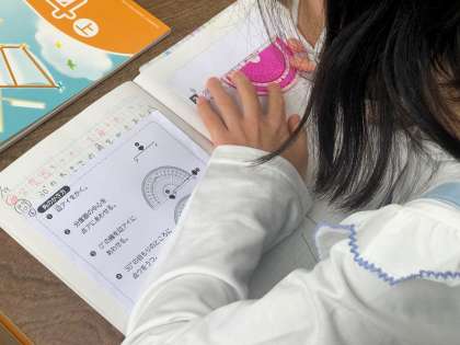 4月19日(水) 4年算数 角‐分度器使って角を書こう- 公開日 2023/04/19 更新日 2023/04/19 お知らせ 4年生の算数は、角の学習をしています。 4年生は分度器の使い方を学習しています。角の単位「度」や直角「90°」、分度器の使い方や角の書き方等を学んでいます。 友だち同士で考えを話し合いながら学んでいる様子もありました。 いいね(0)