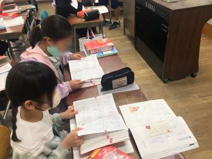 言葉が50音順に並んでいることや、清音「は」、濁音「ば」、半濁音「ぱ」の順に並んでいること等、実際に国語辞典を使いながら覚えていくようにしました。