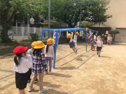 子どもたちは、元気いっぱいに運動場で遊んでいます。