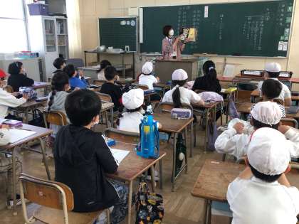 ボランティアの方の人数の加減ですべての学級ではありませんが、訪問する学級をローテーションして、読み聞かせや素語りをしていただいています。