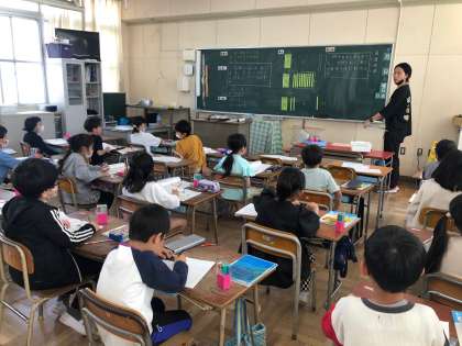 子どもたちは、おはじきを使いながら、しっかりと学習していました。