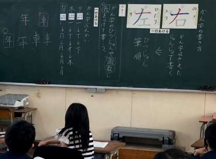 5月9日(火) 2年国語 公開日 2023/05/09 更新日 2023/05/09 お知らせ 今日の2年生の国語の時間は、漢字を学習しました。 今日の漢字は、「左」「右」です。 横が一画めの「左」は、わりと馴染みやすいですが、「右」は縦が一画めであることをきちんと学んでいました。 「右」の字を美しく書くポイントは、一画めの左ばらいを短く書くことだそうです。 子どもたちには、ていねいに、美しく漢字を書けるようがんばってほしいですね。 いいね(0)