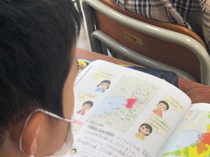 社会科では、教科書の写真や地図、その他の資料を一つ一つ見ながら新しい発見をしていきます。