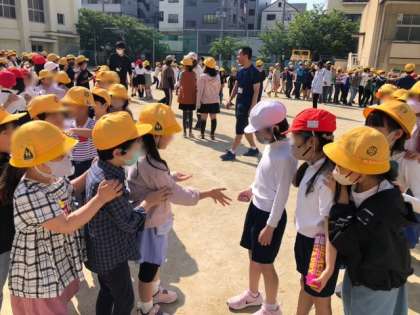 5月10日(水) 児童集会 公開日 2023/05/10 更新日 2023/05/10 お知らせ 今日は、朝から児童集会の日です。 500名を超える全校児童が集まり、みんなで楽しい集会活動をしました。 『じゃんけん列車』です。 じゃんけんポンで、子どもたちが列を作っていきます。コロナ禍でなかなかできなかった児童同士がふれ合う活動でした。 集会委員の児童の皆さん、楽しい企画をありがとう! いいね(0)