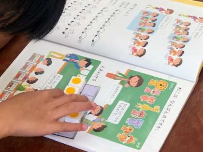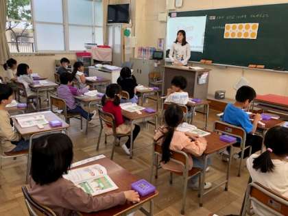 1年生たちは、先生の指示を聞きながら、おはじきを使って楽しく学習していました。