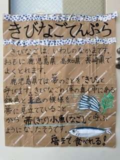 今日は、からりと揚げたきびなごてんぷらに手作りのたれをかけて食べやすくしています。