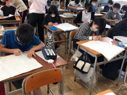 5月11日(木) 6年家庭 公開日 2023/05/11 更新日 2023/05/11 お知らせ 6年生ではナップザックを作ります。 今日の授業では、チャコペンシルで、布の裏に縫うときのしるしをつけました。 できあがりの形や大きさを思いうかべながら、ぬいしろを考えています。 また、ひもを通す部分を考えたり、丈夫に仕上げるために丈夫にぬっていったりすることもこれから意識して仕上げていきます。 いいね(0)