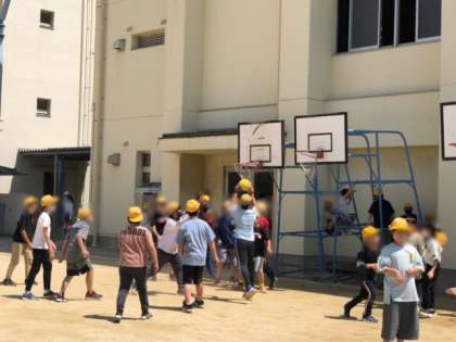 大縄跳びやジャングルジム、ドッジボールやバスケットボール、鬼ごっこ等、いろいろな遊びで運動場はとても楽しそうです。