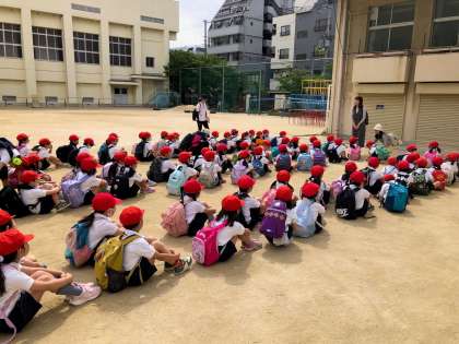 とってもいいお天気の中、1年生は初めての遠足に出かけました。