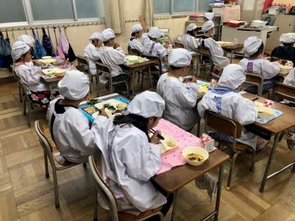 「いただきます!」のあいさつや放送から流れる食材クイズにも関心を持って、今日もおいしい給食をいただきました。