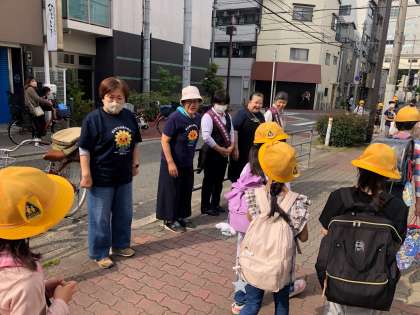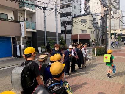 今日は、港区更生保護女性会(波除地区)のみなさまが、登校時の応援をしてくださいました。