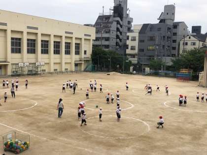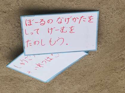 1年生の体育は、「ボールの投げ方を知って、ゲームを楽しもう」という学習です。