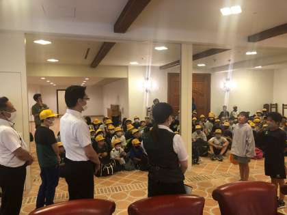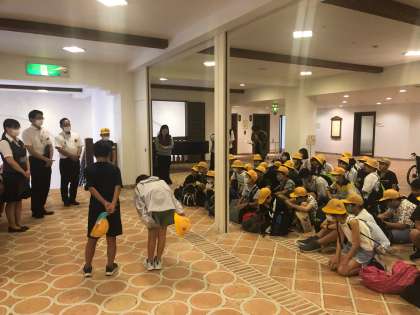 6年修学旅行 6月7日(水) 12 公開日 2023/06/07 更新日 2023/06/07 お知らせ 開舎式をしました。 ホテルの方へ挨拶をしました。ホテルの方からも歓迎の言葉をいただきました。子どもたちは早く部屋に入りたくて、とても嬉しそうです。 ホテル志摩スペイン村のみなさま 今夜一日、どうぞよろしくお願いします。 いいね(0)