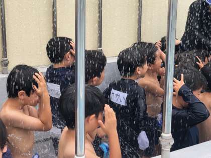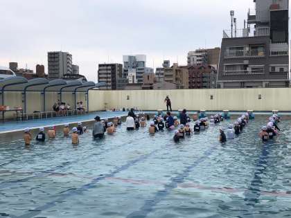 指導する先生の話をしっかりと聴けていました。プールの中に入って、いろいろな水遊びをしました。