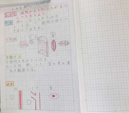 6月21日 6年理科 公開日 2023/06/21 更新日 2023/06/21 お知らせ 6年の理科は、「植物と水」の単元です。 根から取り入れた水が、どこを通って植物の体の中に行きわたるのかを、実際に早く気を観察して調べました。 色水に浸して葉や茎の色の変化を観察しました。 いいね(0)