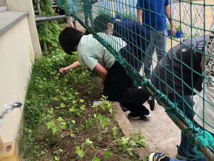 飼育栽培委員会は、学習園の雑草を抜きました。