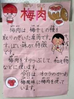 6月23日(金)、今日の給食は「和風カレー丼・オクラのかつお梅風味・りんご(カット缶)・牛乳」です。