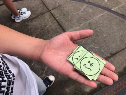 いい挨拶をしている子には、にこちゃんカードが配られました。