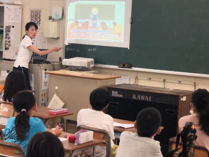 各学年、各学級で英語への関心を高め、親しみをさらに持てるようにするために取り組んでいます。