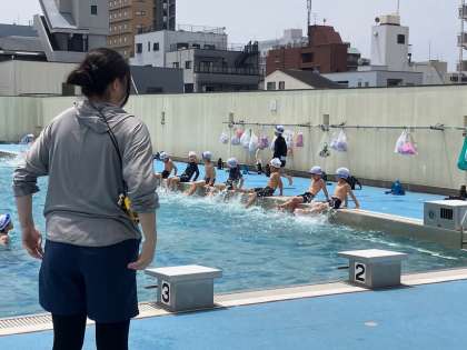 1時間ずつ、プール水泳の学習を重ねながら、水に慣れ、、上手になっていきます。