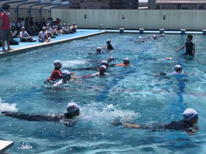 6月29日 6年プール水泳 公開日 2023/06/29 更新日 2023/06/29 お知らせ 6年のプール水泳も着衣泳です。 服を着た時の体の感じ方を体験しました。 着衣のままでの水泳は、水の抵抗を大きく受け、水着でかなりの泳力を有する者であっても思うように泳ぐことができないことから、一定の時間浮いていること(浮き身) が大切であることを認識させるようにしました。 また、誰かがおぼれていても、泳がず、材木やペットボトルを使って救助することができることを学びました。 いいね(0)