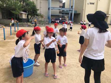 たくさんのしゃぼん玉ができて、とってもうれしそうです。
