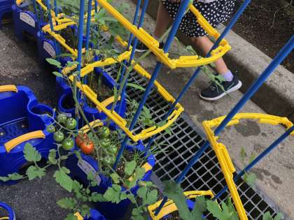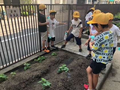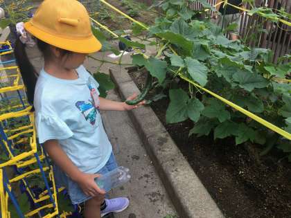 学習園のきゅうりも、オクラも、ミニトマトも育っています。