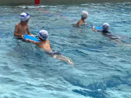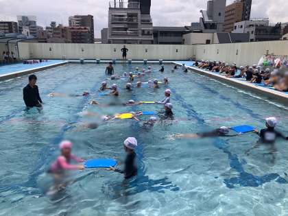 小学校では、1・2年生が水遊びという学習で、3年生以上が水泳という学習です。2年生の子どもたちは、プールでの学習を通して、とても水に慣れ、3年生につながる学習になりました。