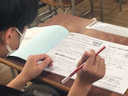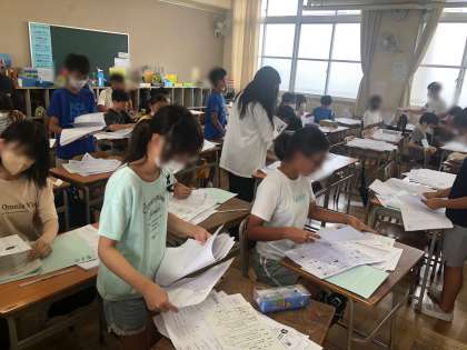 6年生の教室では、夏休みの課題プリントを配付していました。