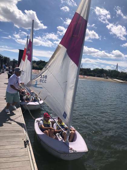 前半後半の2班に分かれて実施しました。当日は、夏ような暑さの中で、前半組はスムーズに体験でしましたが、午後からは風が強く、後半組は思うようにヨットが進みませんでした。