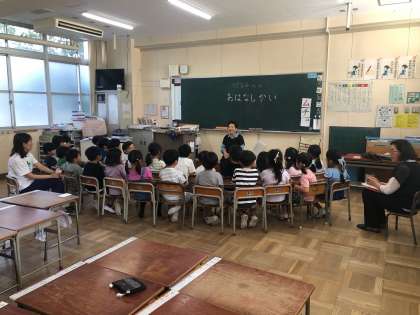 今日は、港区図書館の「さざなみの会」の方々が来校され、図書の読み聞かせや語りをしていただきました。