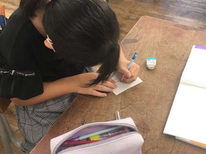今日は、チョウの体のつくりについて、絵にかいて調べました。
