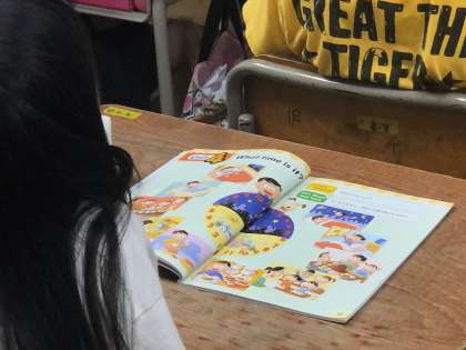 何をしている時刻なのかを英語で表す学習をしています。