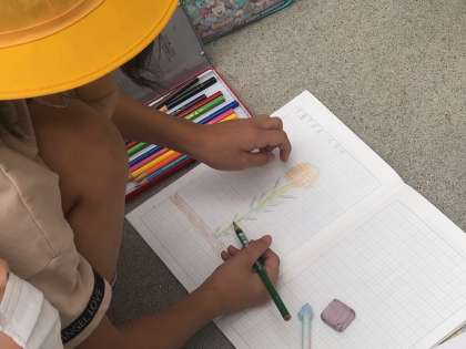 3年生の理科学習では、1学期に栽培していたヒマワリやマリーゴールドを観察して、絵にかきました。
