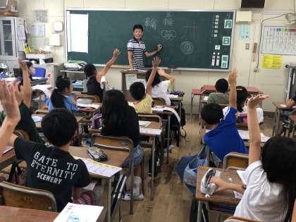 「輪」の漢字を習いました。輪を使った言葉や熟語で、「輪投げ」は知っているのですが、「年輪」が何か知らないようでした。「年輪」の意味についても学びました。
