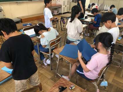 9月12日 2年学級活動 公開日 2023/09/12 更新日 2023/09/12 お知らせ 2年生の教室では、15日(金)のなみよけまつりに向けて、学級のお店の準備をしていました。教室に掲示するお店の案内やメッセージを作っていました。 この学級は、「ひらひらまつり」というお店で、落ちてくる紙をキャッチする遊びを考えています。 いいね(0)