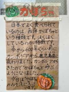 今日は旬のかぼちゃが入ったみそ汁でした。給食のみそ汁は、赤みそと白みそを使った合わせみそ仕立てです。今日は、かぼちゃ自体が甘いので、赤みそを多く使っています。