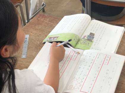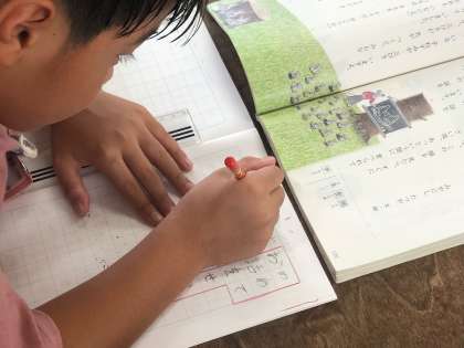 きょうのめあては、お話をせいりしようです。登場人物を確かめ、ノートに書きまとめました。