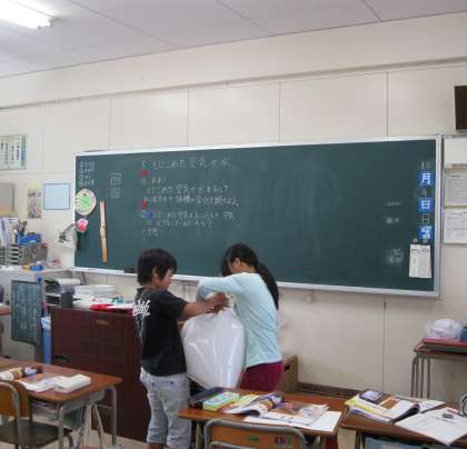 4年 理科の学習 公開日 2015/10/09 更新日 2015/10/09 4年 4年生が空気の学習をしていました。「閉じ込めた空気を押すと空気はどうなっているのだろうか」ということを調べていました。協力して、ビニル袋に空気を取り込んでいました。 いいね(0)