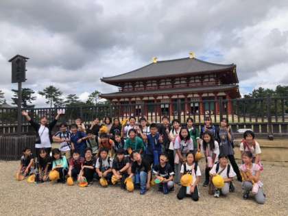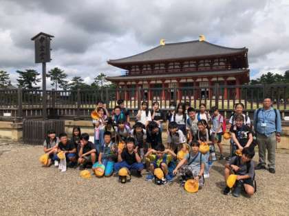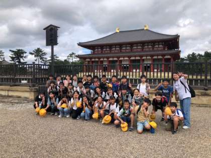 まずは、興福寺境内ではいポーズ!(中金堂前です)