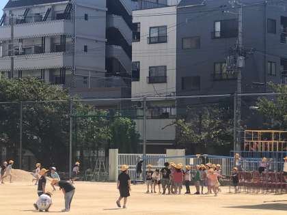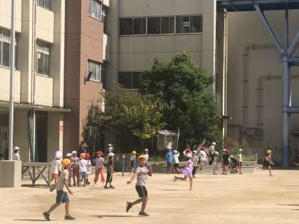 子どもたちは元気に運動場に出てきました。